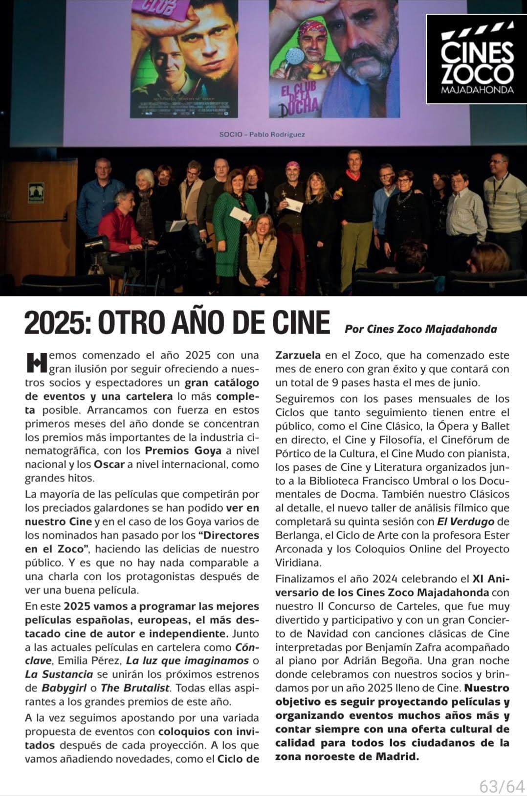 El número 159 de la revista «Sensación del Noroeste» correspondiente al mes de enero de 2025 incluye un artículo sobre las actividades del mes, redactado por Jesús Escudero, responsable de Eventos en Cines Zoco.