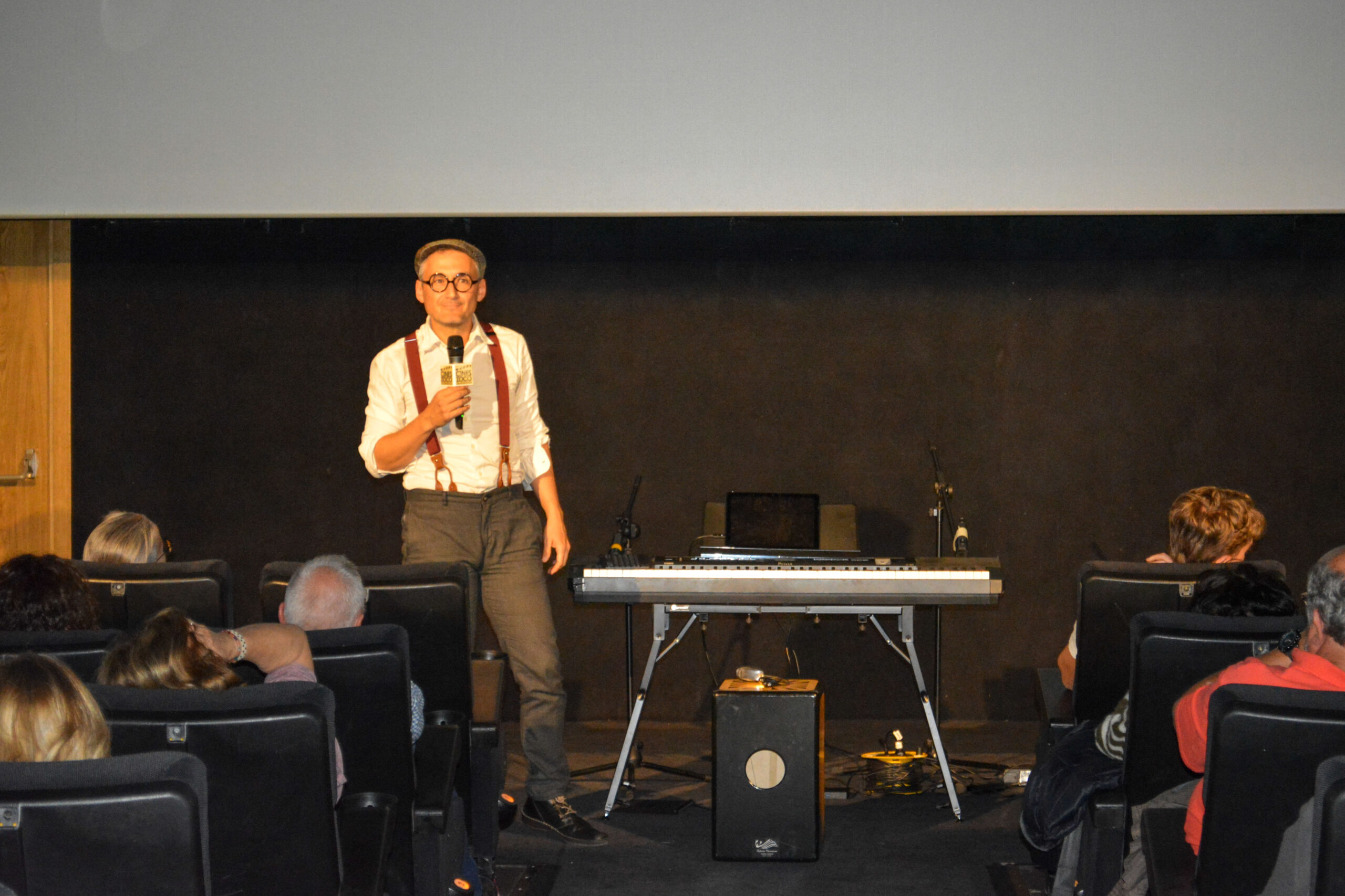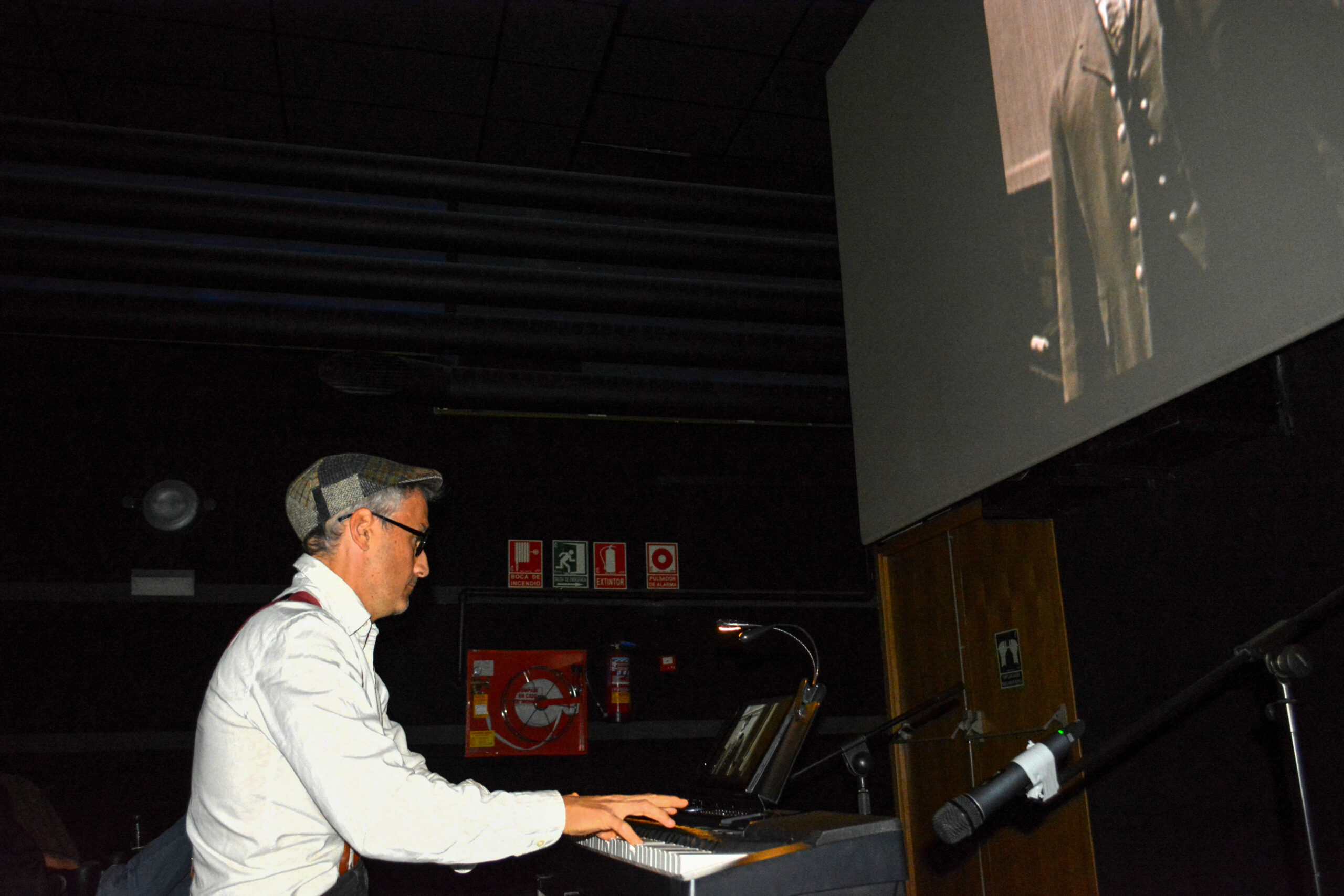 El 27 de septiembre de 2024 retomamos las sesiones de cine mudo con la actuación de Adríán Begoña como pianista en directo. De nuevo tuvimos en escena al mítico humorista Harold Lloyd, con su película más conocida «El hombre mosca» (Safety last) de 1923.