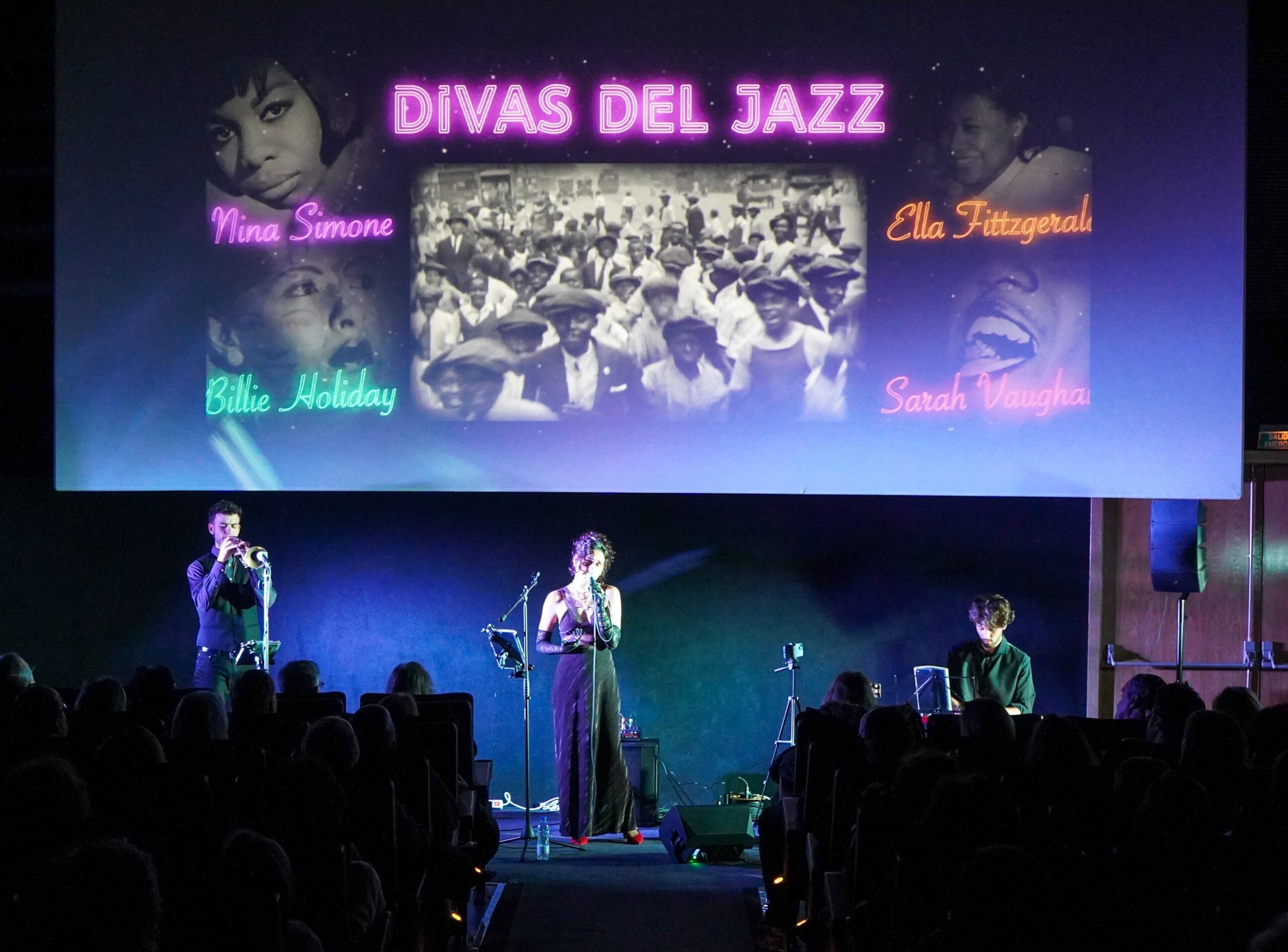 Vive una noche especial dedicada a las grandes divas del jazz: Ella Fitzgerald, Nina Simone, Billie Holiday y Sarah Vaughan. Con la apasionada voz de María Zerpa, el talento de Andrés Comesaña al piano y la expresividad de Moisés Melchor a la trompeta, este trío interpretará versiones de las canciones más emblemáticas que hicieron famosas a estas legendarias artistas, mientras se proyectan imágenes que reviven momentos históricos, detalles biográficos, escenas de películas dedicadas a ellas y actuaciones memorables. Un espectáculo vibrante y evocador que fusiona música, cine, historia y emociones para rendir homenaje a las voces que transformaron el jazz en un arte eterno.