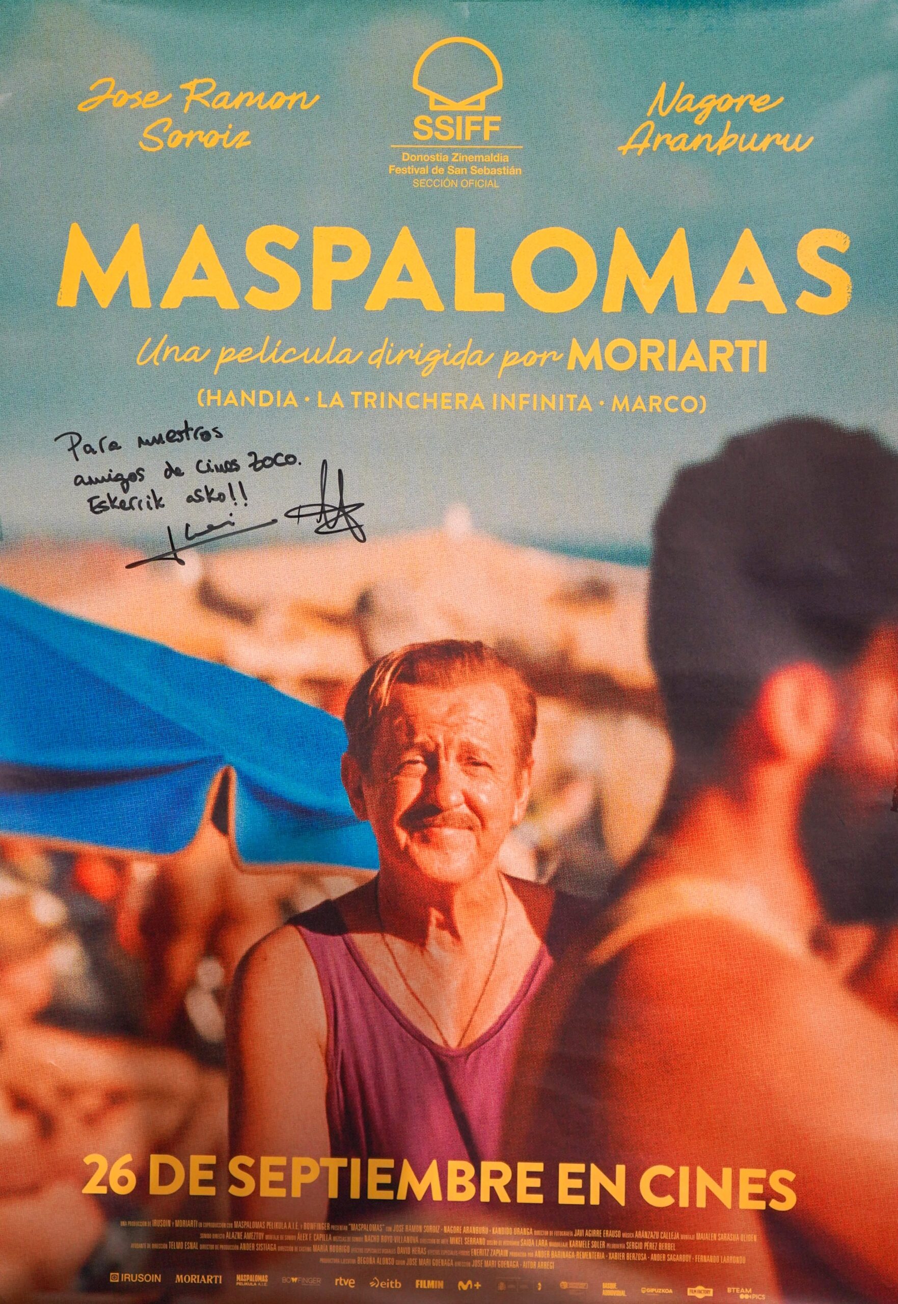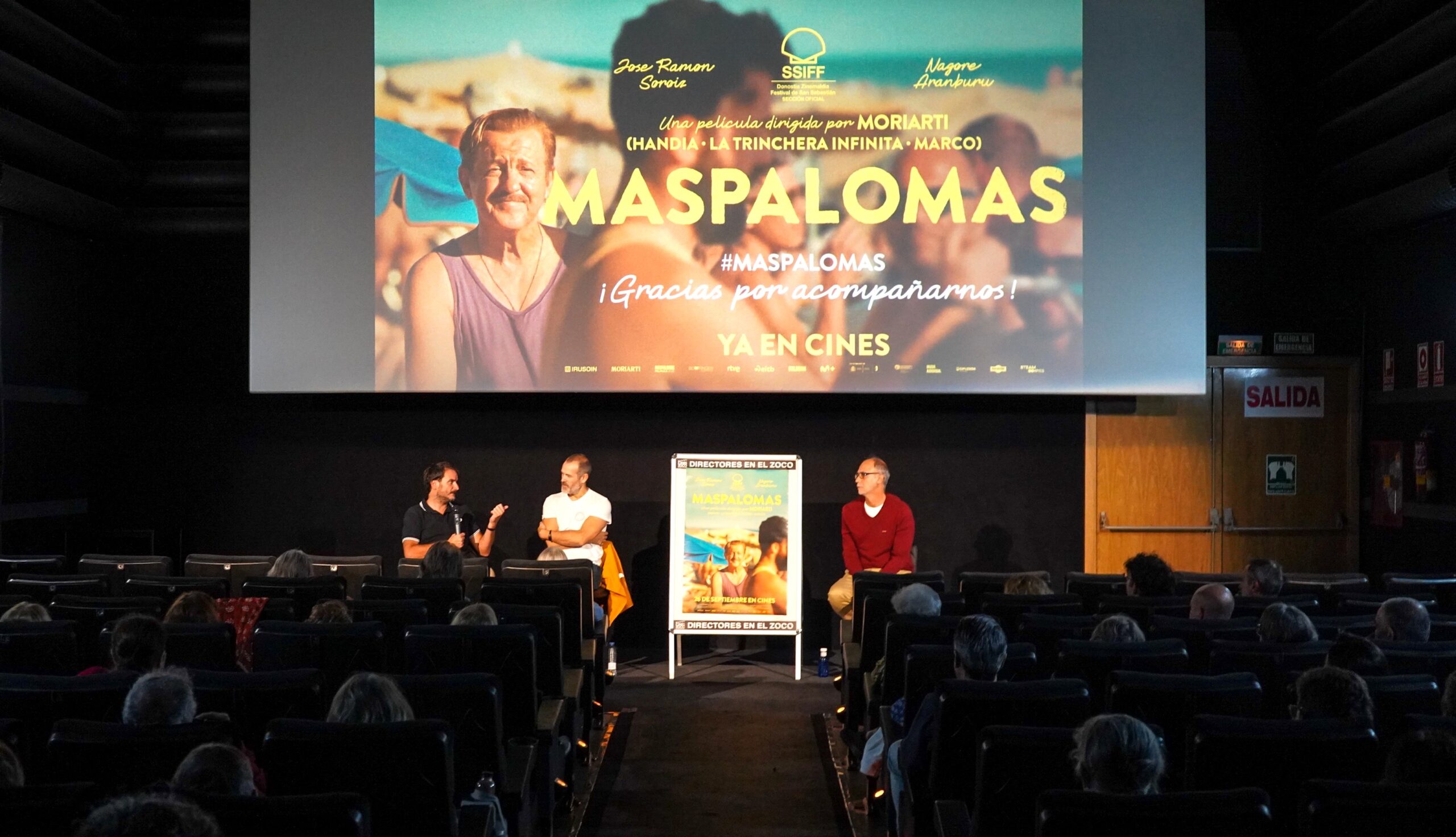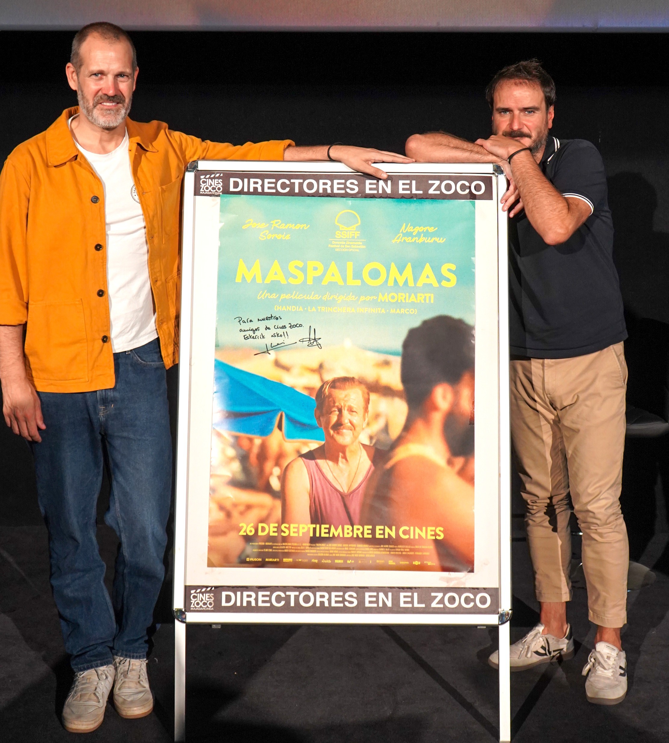 El día 26 de septiembre de 2025 nos visitaron Aitor Arregi y José Mari Goenaga, del colectivo MORIARTI, directores del largometraje «Maspalomas». Después de la proyección mantuvieron un largo e interesante coloquio con el público.