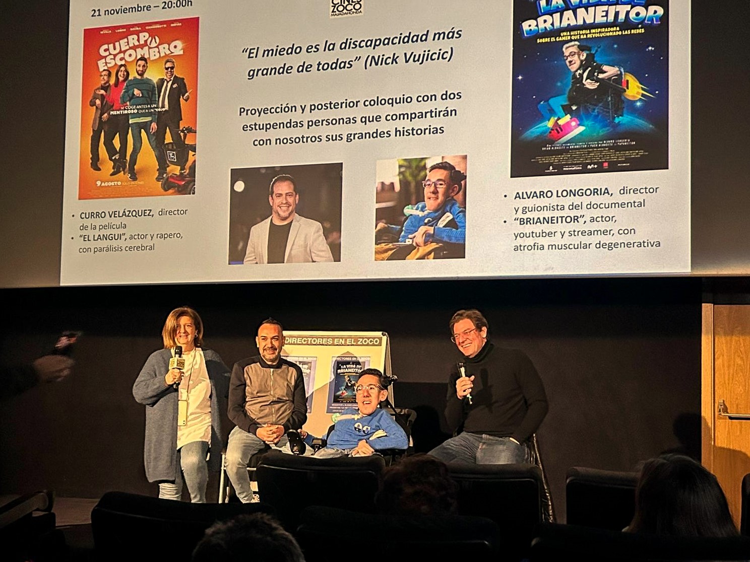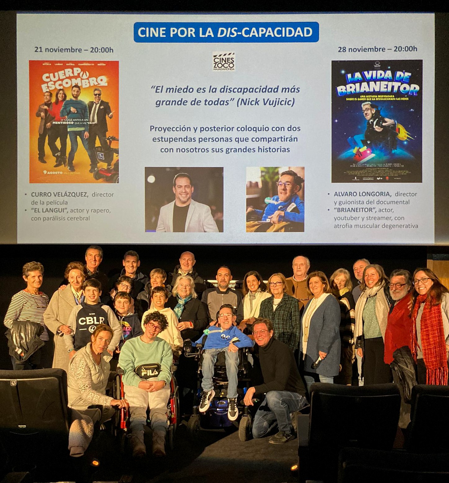 El 28 de Noviembre celebramos la segunda sesión de Cine por la Dis-Capacidad con la proyección de «La vida de Brianeitor» y el coloquio con su director Álvaro Longoria y con el propio Brianeitor, que encandiló a nuestro público. ¡Un evento mágico! También se unió al coloquio el padre del propio actor y gamer, Paco Albacete.
