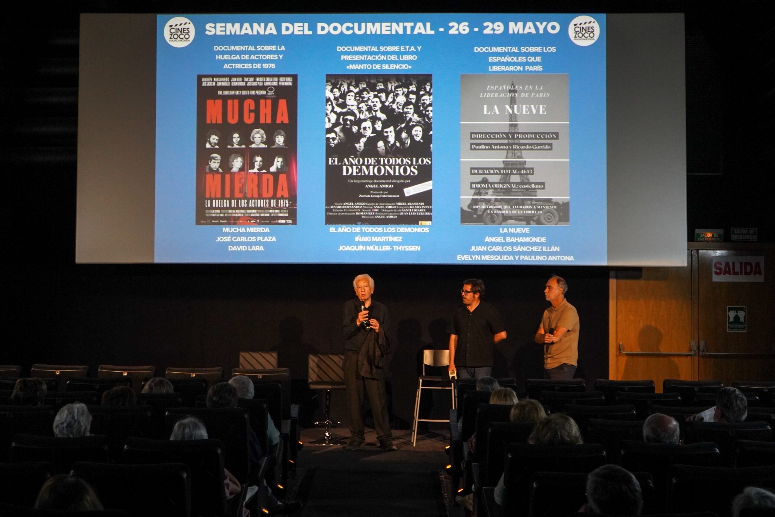 Durante el coloquio que siguió a la proyección. Los invitados dejaron claro que “Queríamos un sindicato democrático elegido por nosotros, no vertical”. También dijeron que buscaban la solidaridad del público joven, aunque no lo consiguieron. “Ahora si hay público joven que va al teatro”, dijeron.