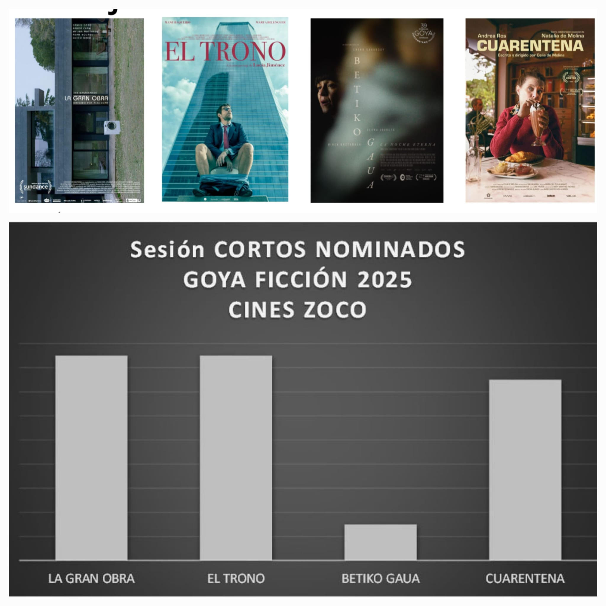 El 27 de enero de 2025 celebramos una nueva sesión de Cortos, presentada por José Luis Palacios y Beatriz Martínez, comisarios cinematográficos y miembros de la Coordinadora del Cortometraje español. En esta ocasión se proyectaron cuatro cortometrajes nominados a los GOYA en la categoría de ficción y dos en la de animación.