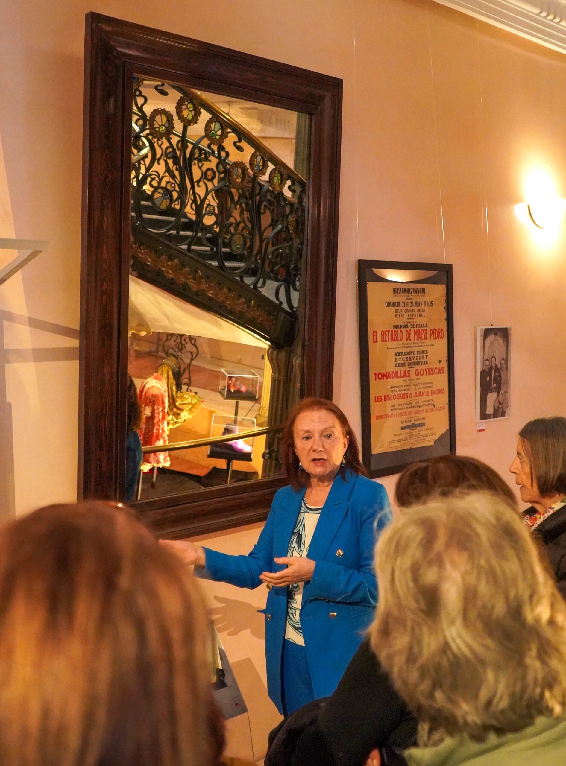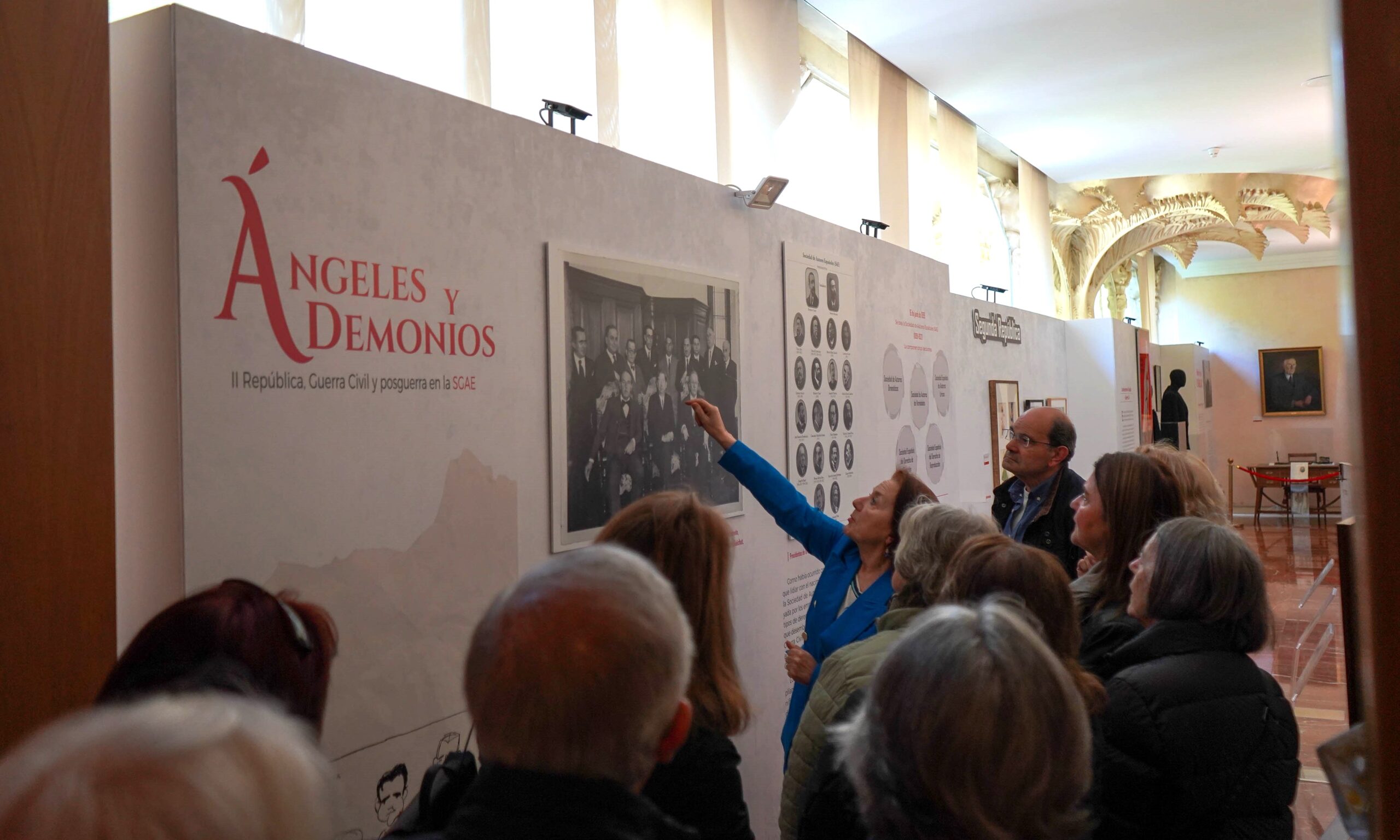Tuvimos el privilegio de que la visita fuera guiada por Mª Luz González Peña, Comisaría de la exposición y coautora del libro «Ángeles y demonios. II República, Guerra Civil y posguerra en la SGAE», que además es directora del archivo de la SGAE.