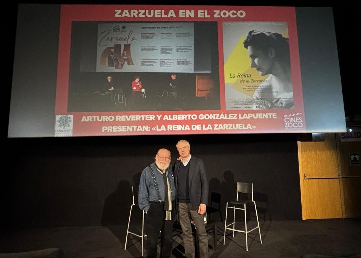 El pasado 22 de abril de 2025 se proyectó en el cine el documental «La reina de la zarzuela» de Josu Venero, dentro del programa “La zarzuela en el cine” que se viene desarrollando desde principio de este año en colaboración con la Fundación Jacinto Guerrero. En esta ocasión el invitado fue Arturo Reverter, conocido crítico musical y director del programa Ars Canendi (Radio Clásica de RNE). El evento fue presentado por Alberto González Lapuente, musicólogo y representante de la Fundación Guerrero.